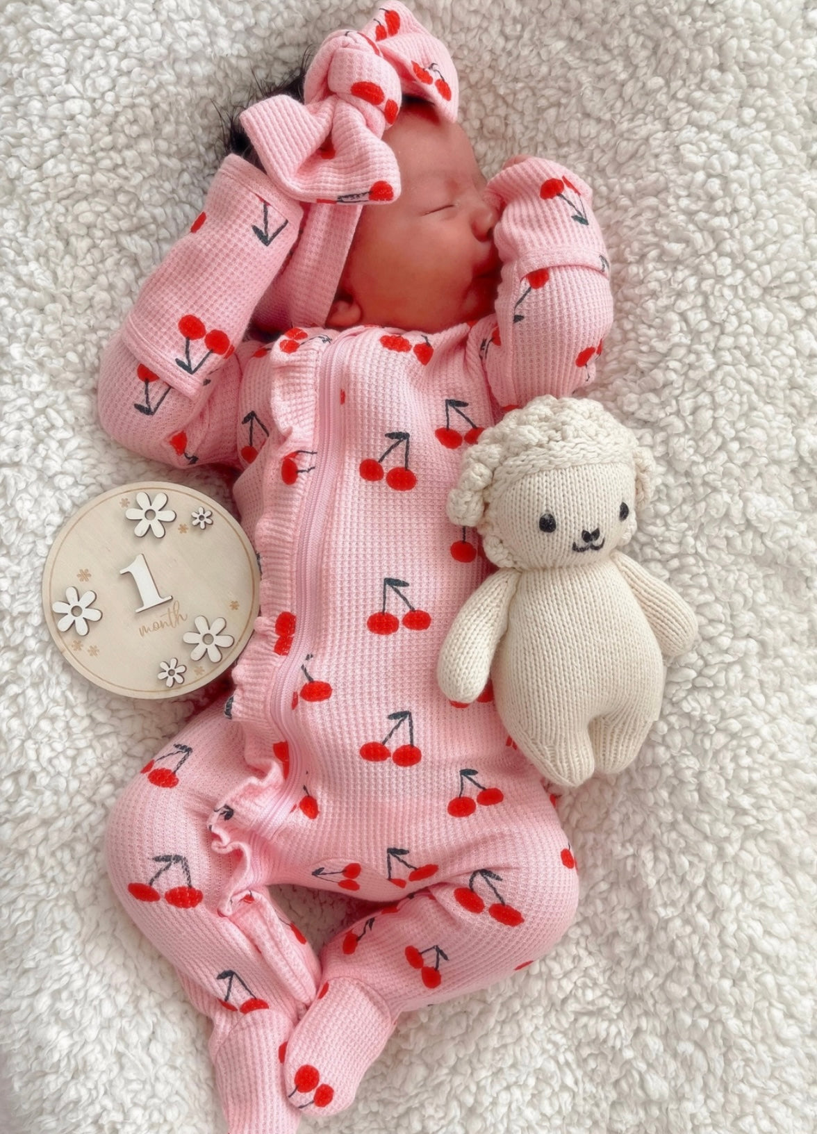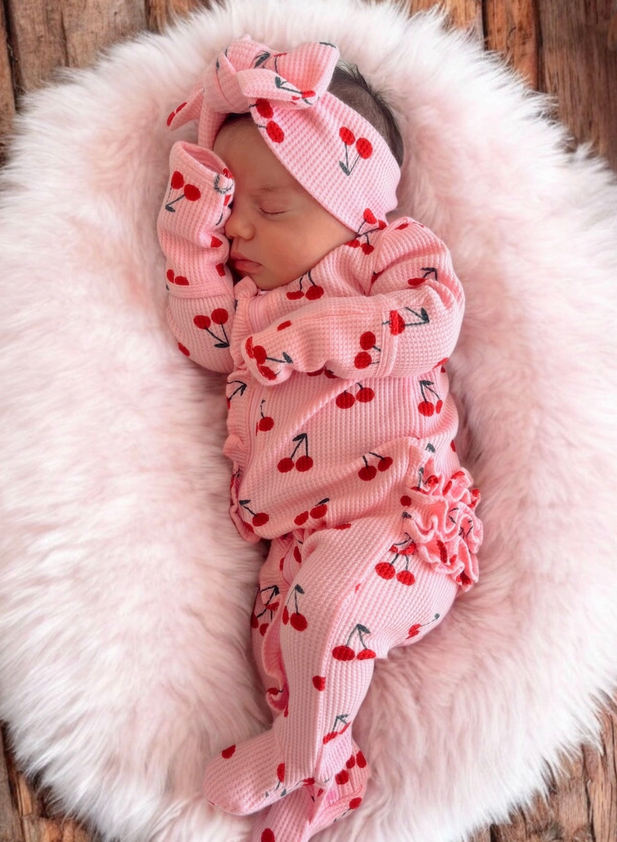 Pink Cherries Organic Waffle 2-Way Zip Footie