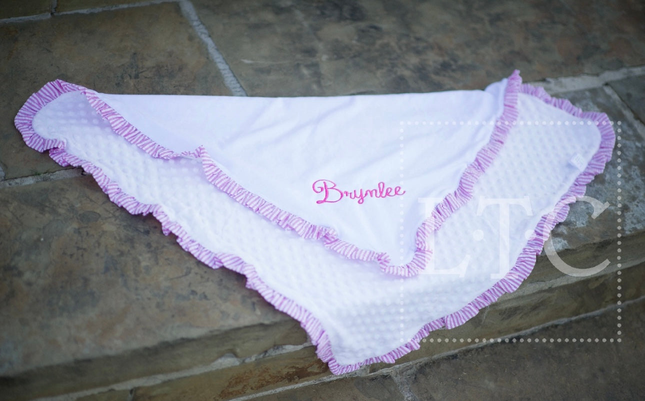 Pink Seersucker Trim Minky & Cotton Baby Blanket